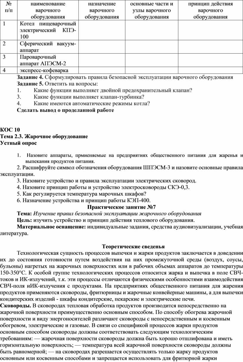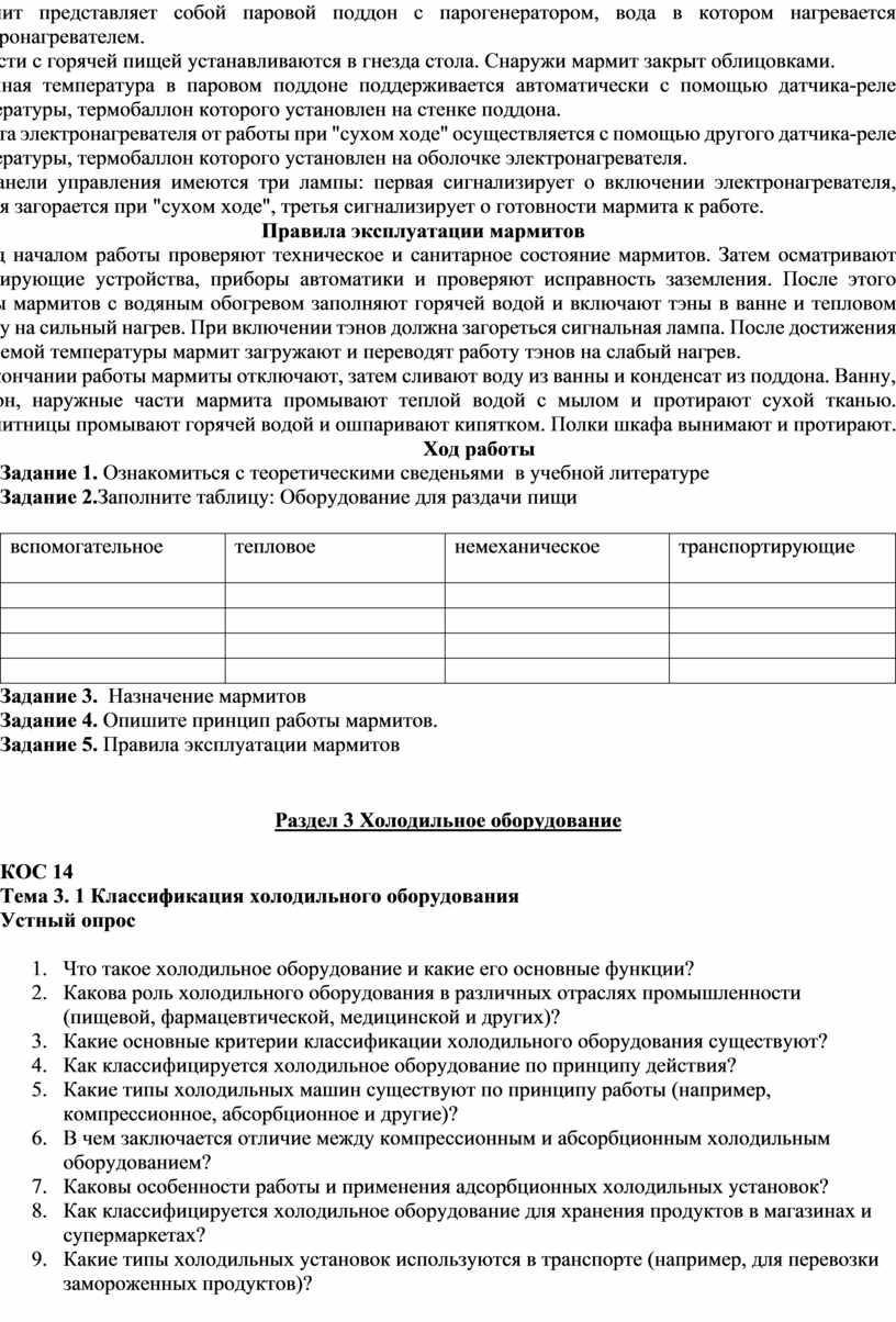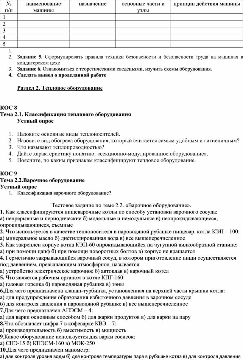 Раздел 4.Техническое оснащение процессов кулинарного и кондитерского производства |