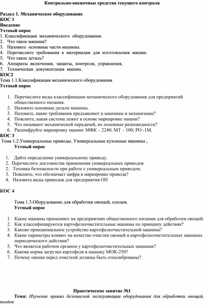 1. Какие машины применяют на предприятиях общественного питания для обработки овощей.