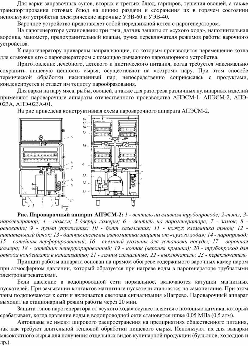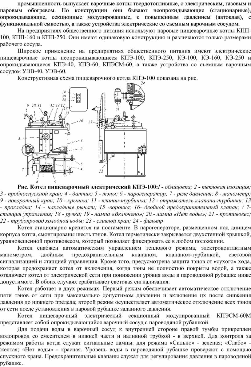 18. Варка происходит при атмосферном давлении в двух режимах за счет нагревания содержимого котла электрическими тэнами.