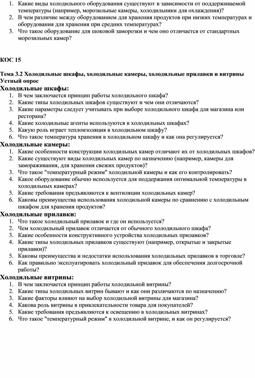 Тема 3.2 Холодильные шкафы, холодильные камеры, холодильные прилавки и витрины |