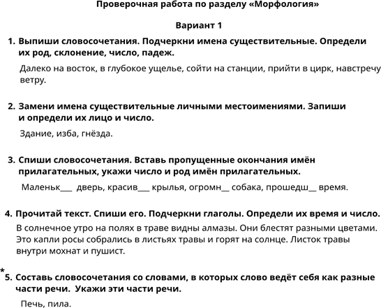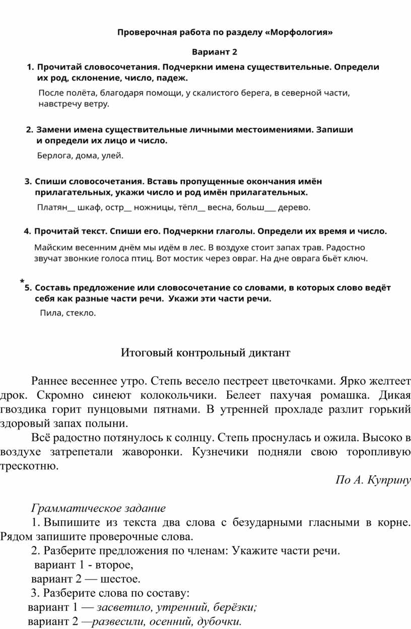 Контрольная работа № 5 по разделу « Морфология»