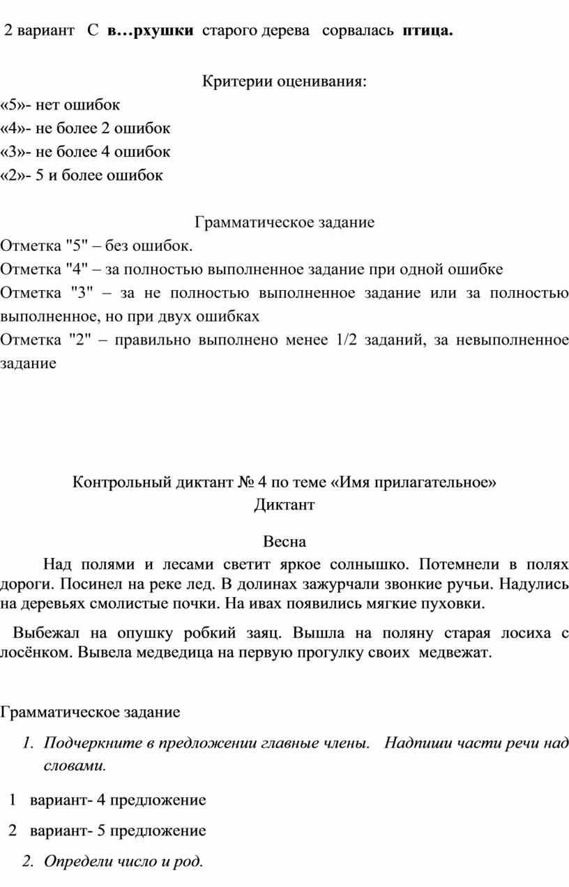 Контрольный диктант №4 по теме «Имя прилагательное» |
