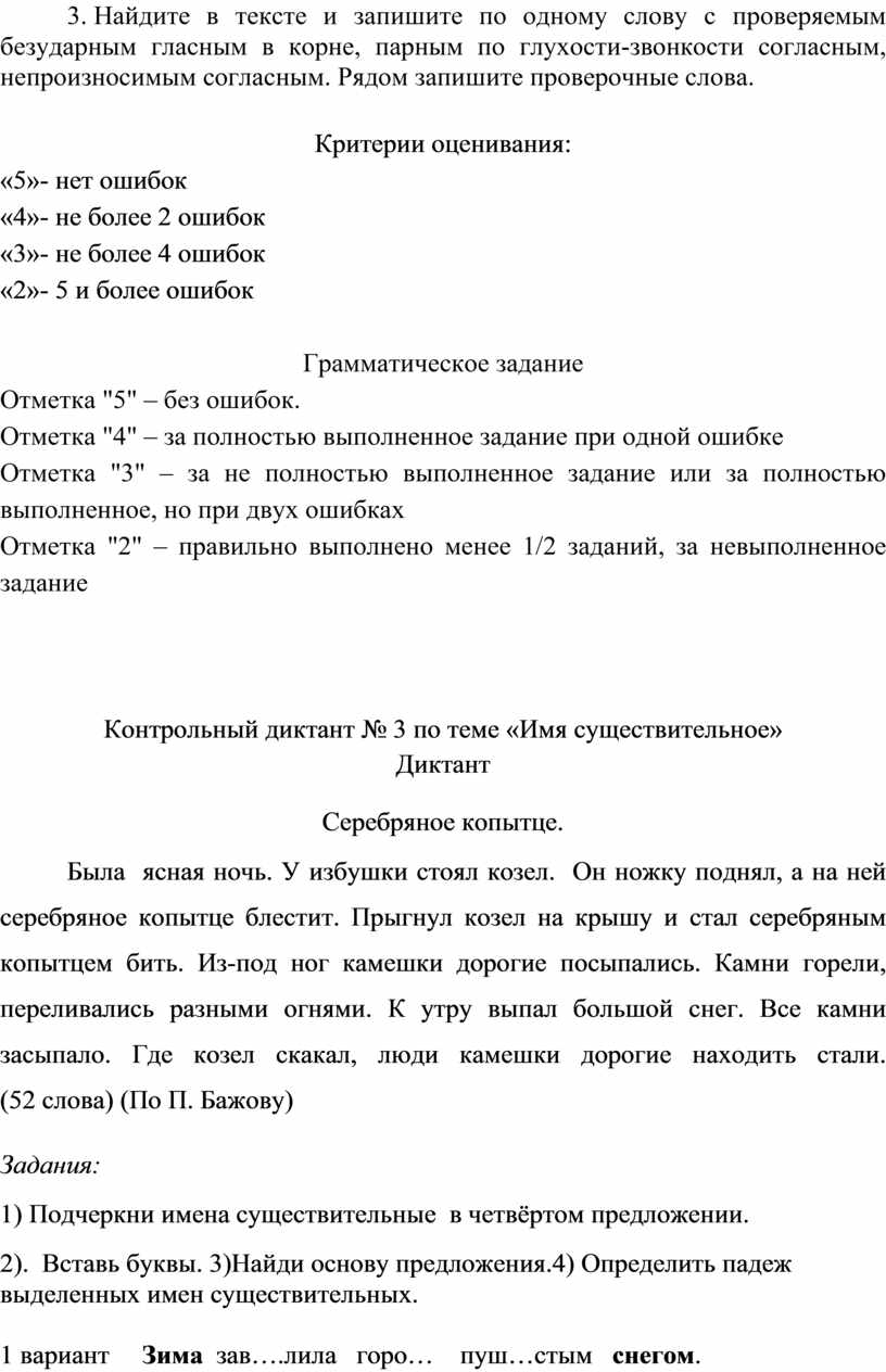 Контрольный диктант № 3 по теме «Имя существительное»