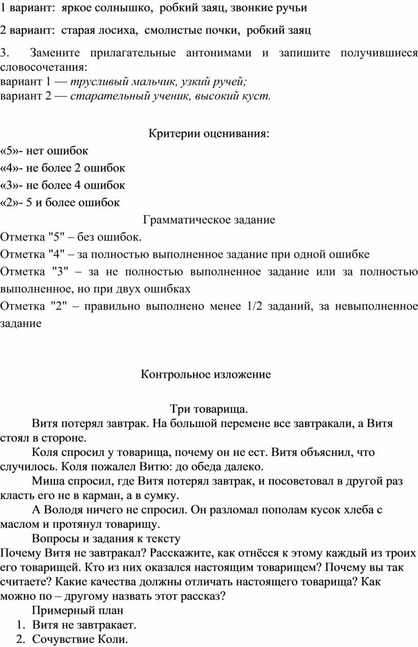 КОНТРОЛЬНО-ИЗМЕРИТЕЛЬНЫЕ МАТЕРИАЛЫ ПО РУССКОМУ ЯЗЫКУ В 3 КЛАССЕ