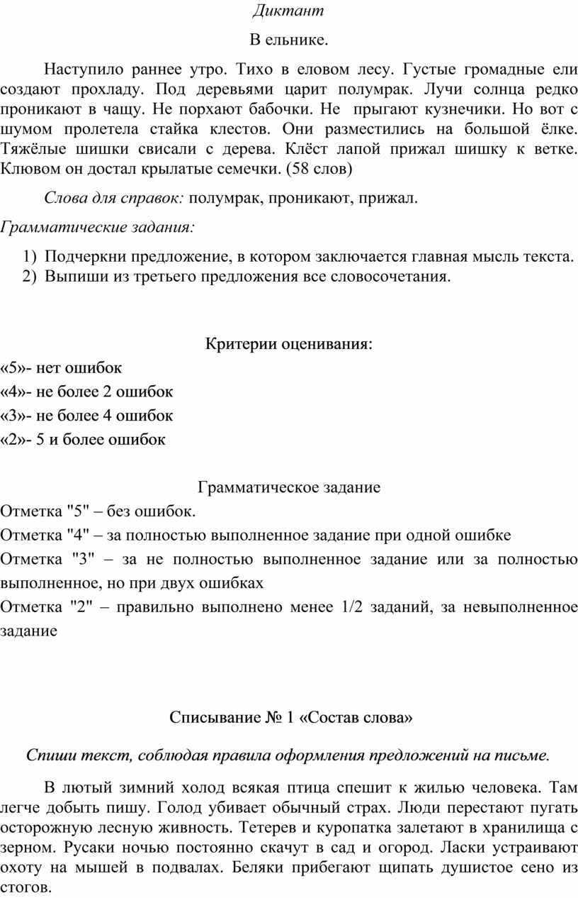 Списывание № 1 «Состав слова»