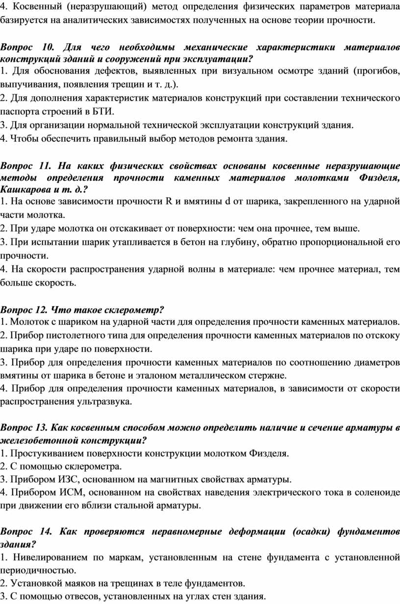 ü разработка мероприятий по технической эксплуатации зданий, их состав и содержание; ü применение аппаратуры, приборов и методов контроля состояния и свойств материалов и конструкций при обследовании зданий. |