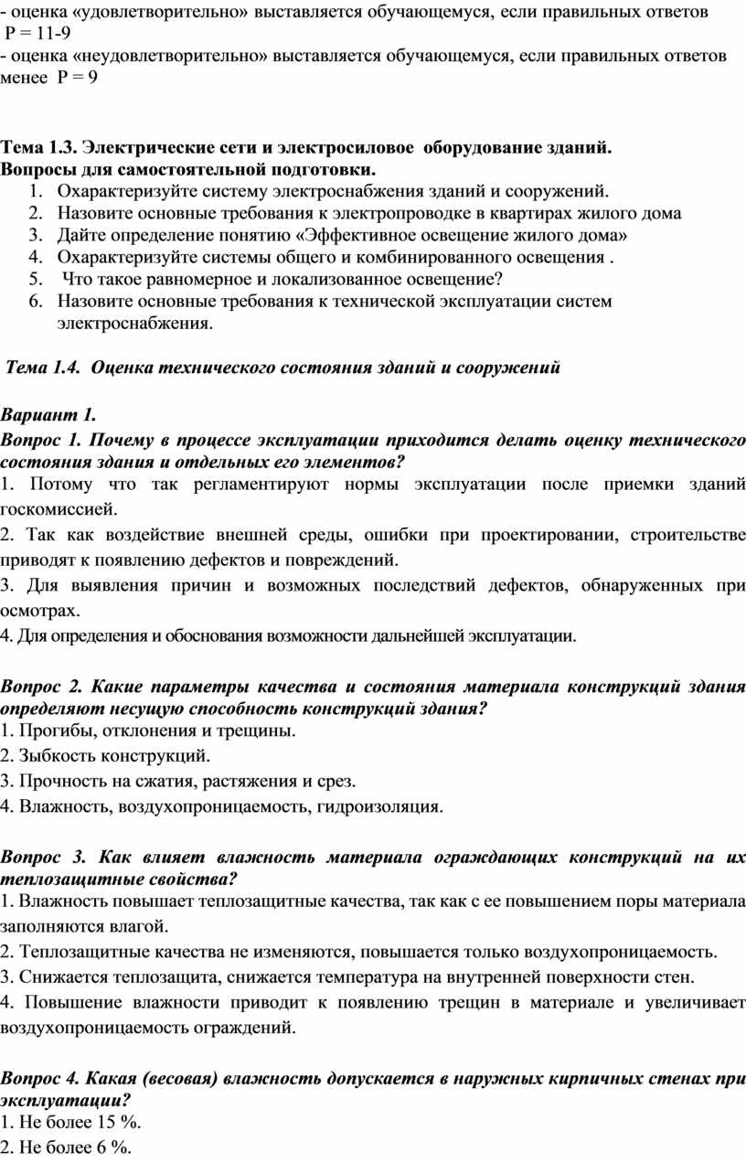 Тема 1.1. Техническая эксплуатация зданий и сооружений |