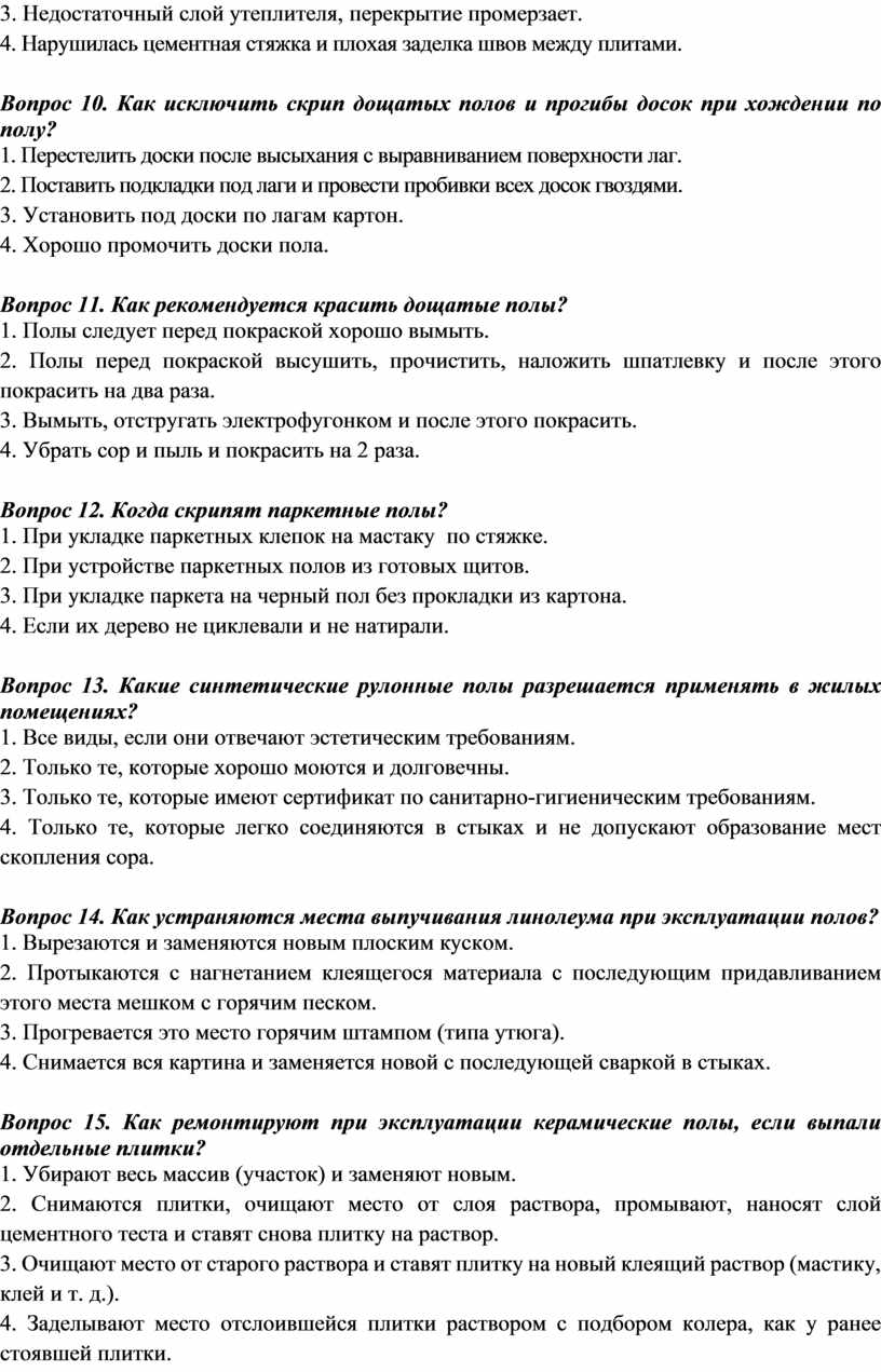 ü диагностика технического состояния конструктивных элементов эксплуатируемых зданий и сооружений; ü определение сроков службы элементов здания; ü установление и устранение причин, вызывающих неисправности технического состояния конструктивных элементов и инженерного оборудования зданий; ü выполнение обмерных работ; ü проведение гидравлических испытаний систем инженерного оборудования; ü чтение схемы инженерных сетей и оборудования зданий; |