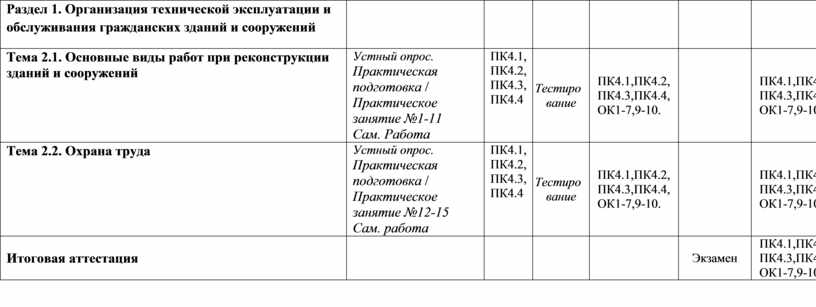 ПК 4.4. Осуществлять мероприятия по оценке технического состояния и реконструкции зданий |