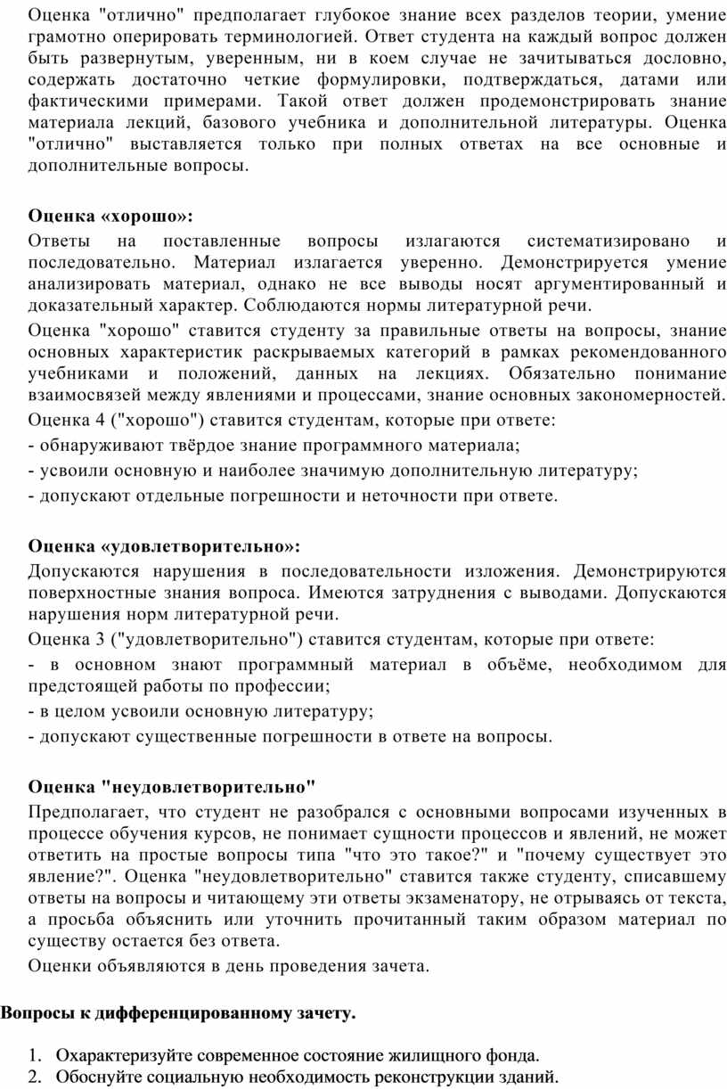 Оценка выполнения работ на учебной практике - участие в диагностике технического состояния конструктивных элементов эксплуатируемых зданий и сооружений; - организация работ по технической эксплуатации зданий и сооружений в соответствии с нормативно-техническими документами; - выполнение мероприятий по технической эксплуатации конструкций и инженерного оборудования зданий и сооружений; - осуществление мероприятий по оценке технического состояния конструкций и элементов зданий; -осуществление мероприятий по реконструкции зданий и сооружений; |