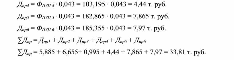 Дпр4 = ФПЗП 4 ∙ 0,043 = 103,195 ∙ 0,043 = 4,44 т. руб.