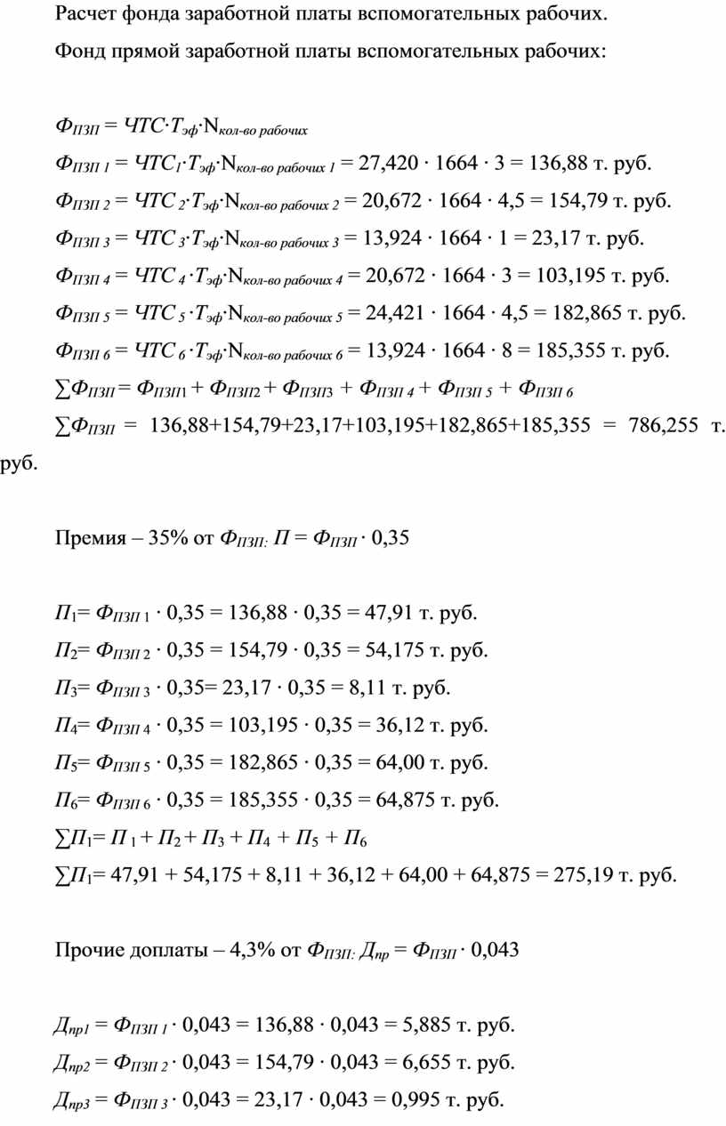 Расчет фонда заработной платы вспомогательных рабочих.