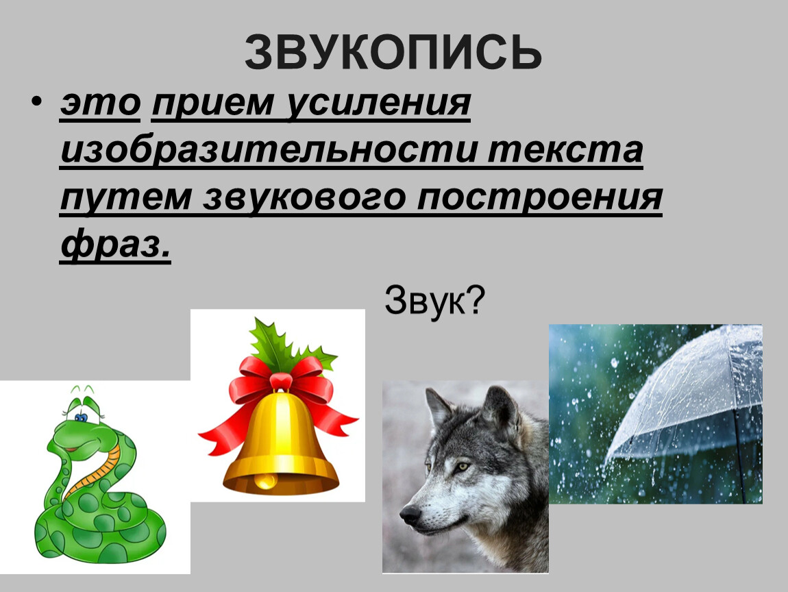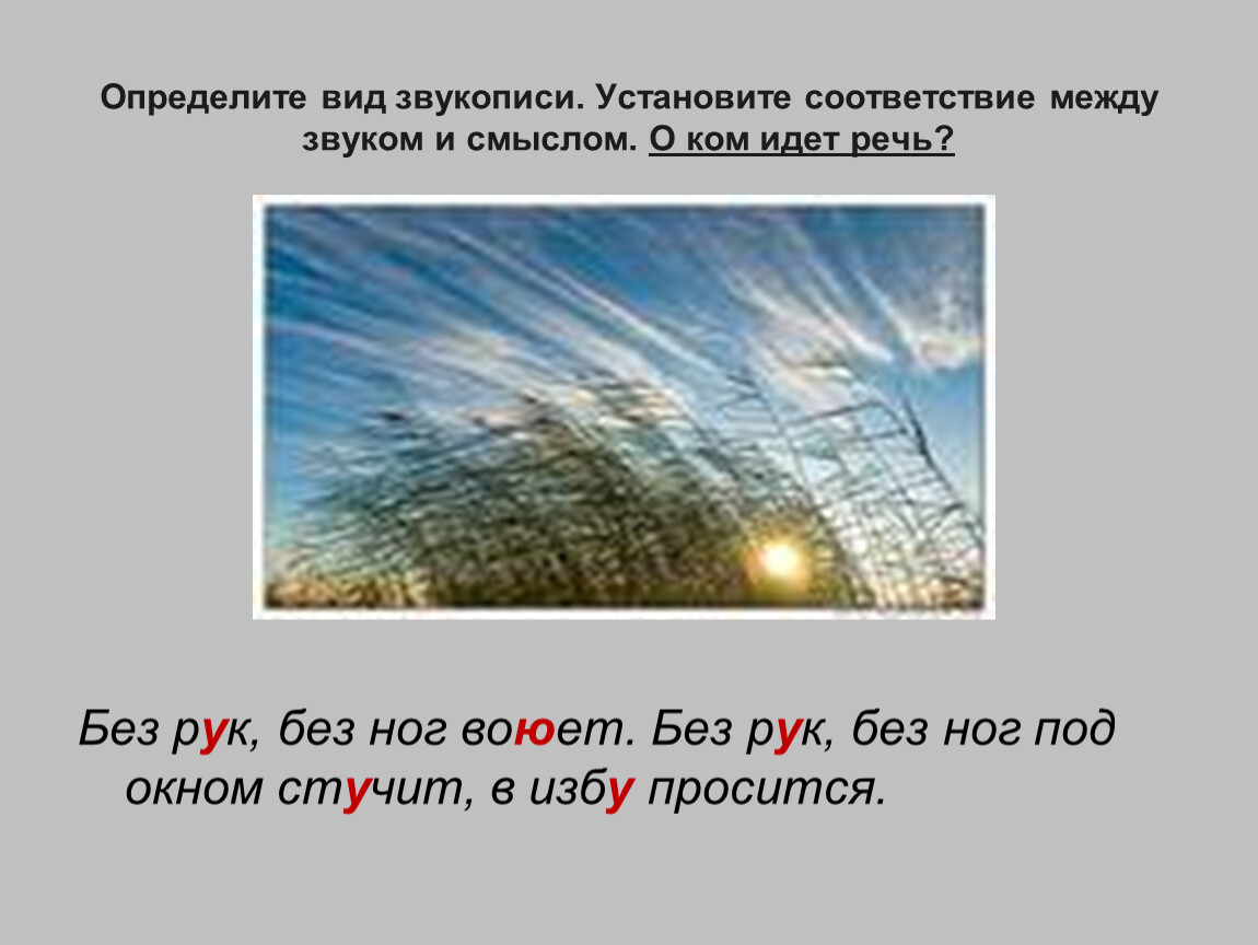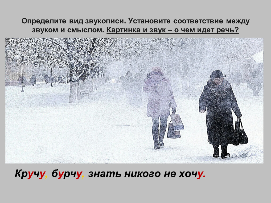 Определите вид звукописи. Установите соответствие между звуком и смыслом. Картинка и звук – о чем идет речь?