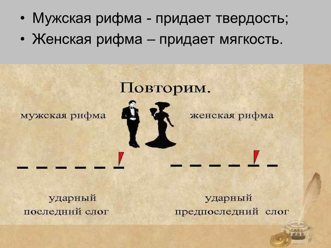Определит рифму (мужская-женская).