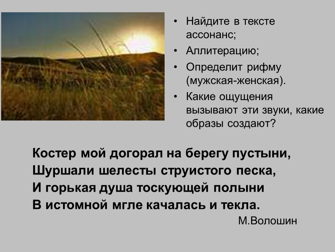Найдите в тексте ассонанс;