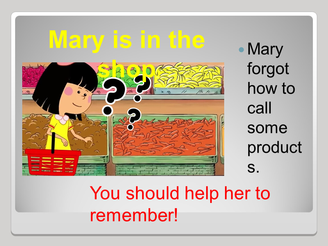 Thank you for you helping,Mary did the shopping and remember all words and grammatical constructions!