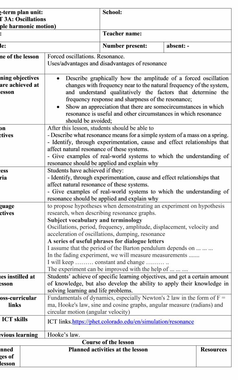 Long-term plan unit: UNIT 3A: Oscillations (Simple harmonic motion) |