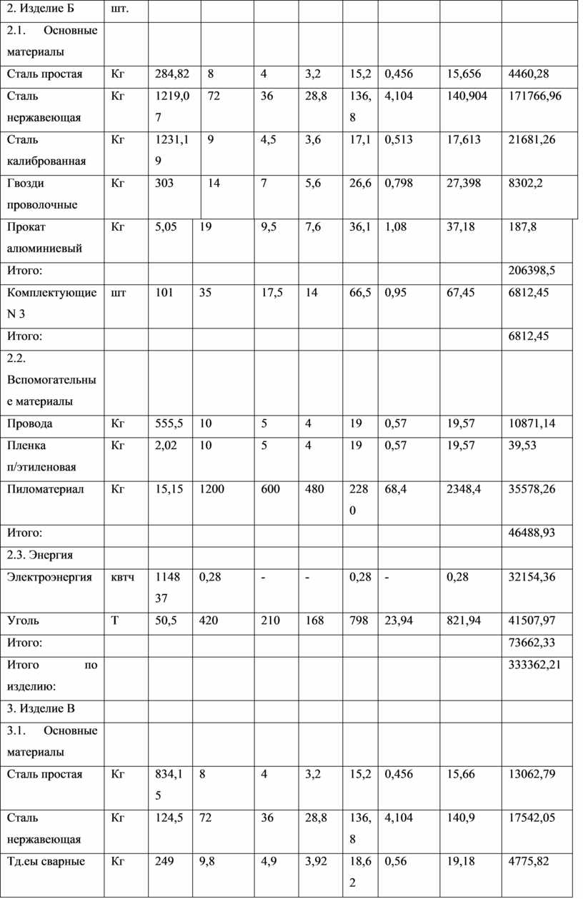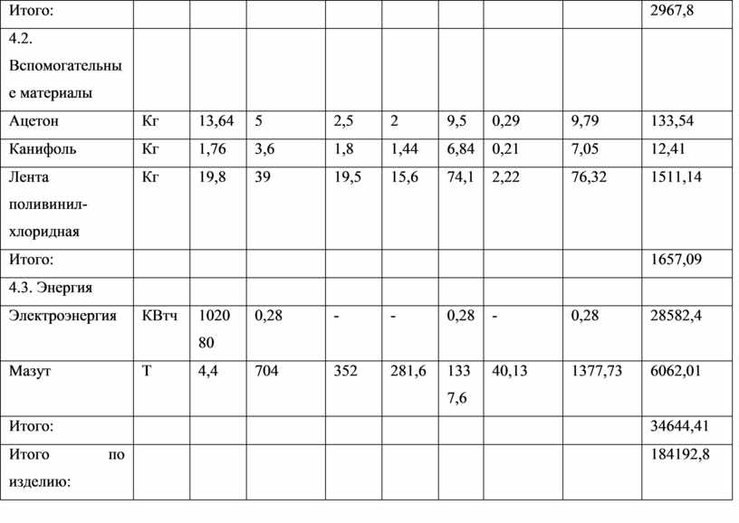 Сырье, полуфабрикаты, основные вспомогательные энергоносители |