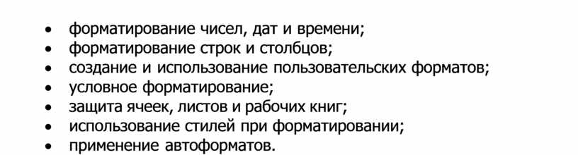 Форматирование в Excel включает в себя решение следующих во- просов: