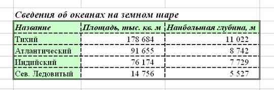 Ячейки таблицы