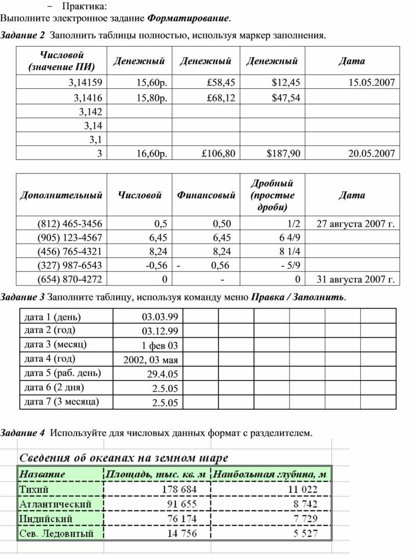 Задание 4 Используйте для числовых данных формат с разделителем.