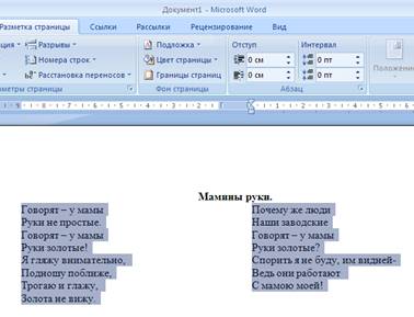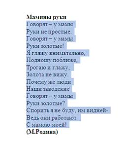 Шаг 1. Для того чтобы разделить текст на две колонки нужно выделить только сам стих без названия и автора.
