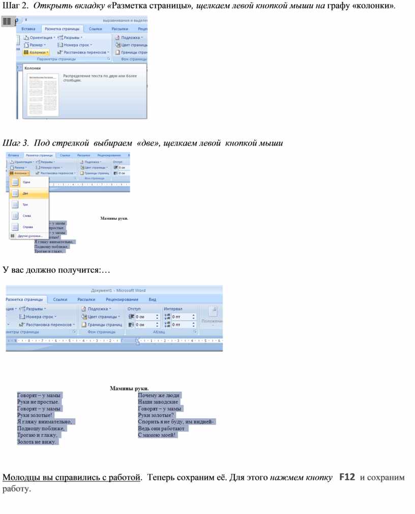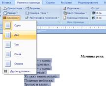 Цель: научить форматировать текст и делить на колонки Microsoft Office Word 2013