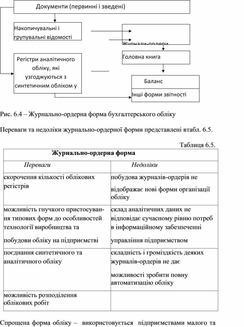 Переваги та недоліки журнально-ордерної форми представлені в табл. 6.5.