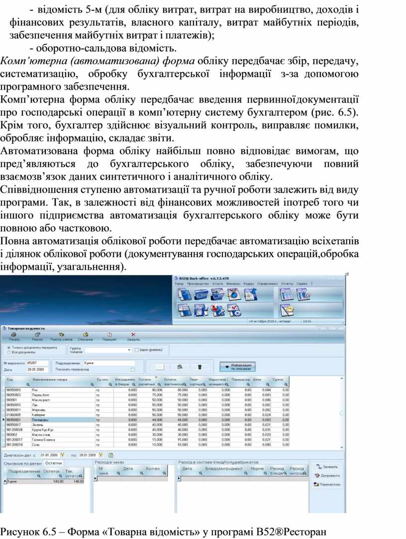 Рисунок 6.5 – Форма «Товарна відомість» у програмі В52®Ресторан