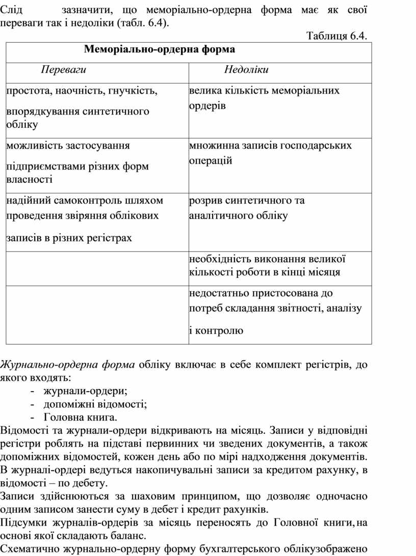 Слід зазначити, що меморіально-ордерна форма має як свої переваги так і недоліки (табл. 6.4).