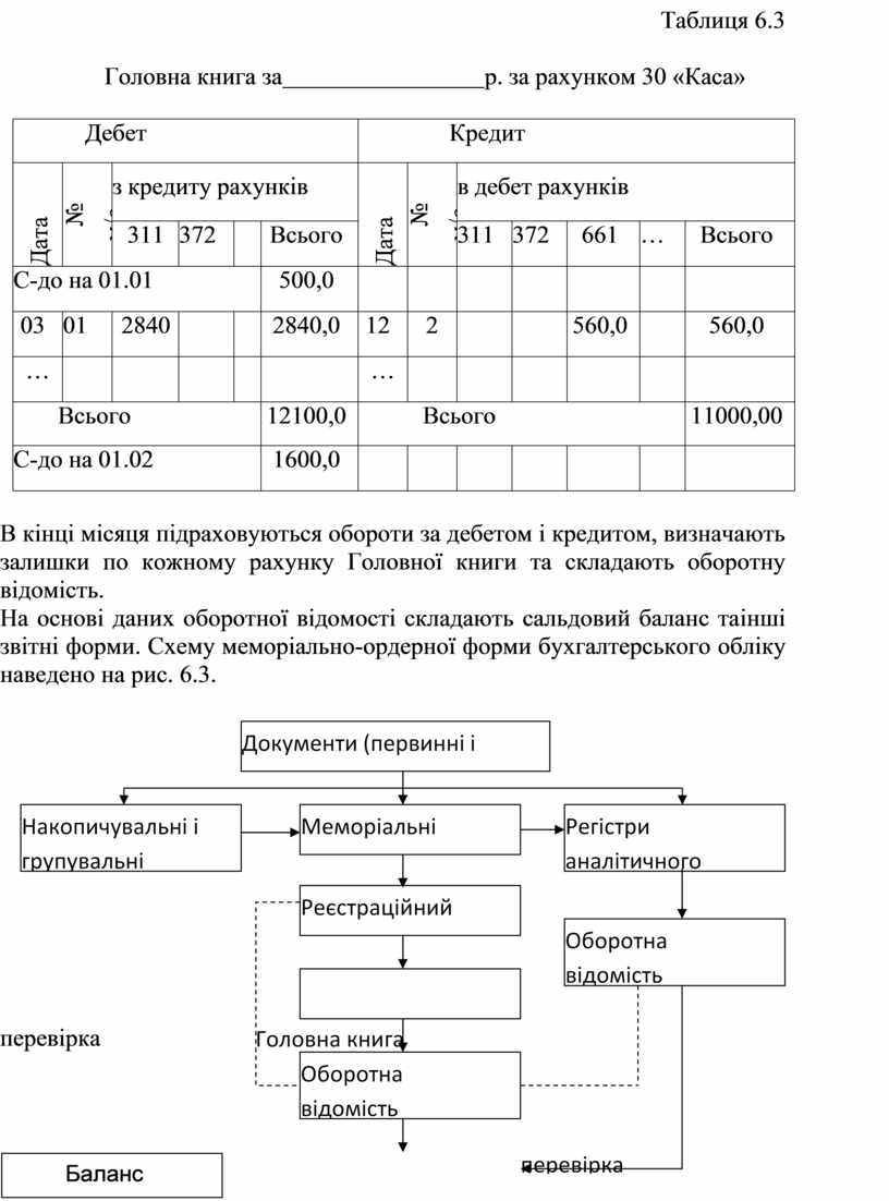 Після реєстрації інформацію з меморіальних ордерів переносять в регістр синтетичного обліку – Головну книгу (табл. 6.3).