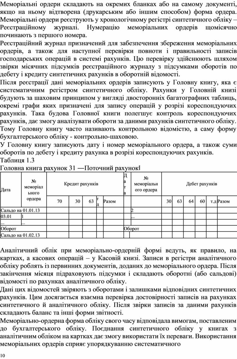 Меморіально-ордерна (контрольно-шахова) форма бухгалтерського обліку характеризується застосуванням книг для ведення синтетичного обліку і карток - для аналітичного. Порядок облікової реєстрації господарських операцій при меморіально-ордерній формі такий. На підставі оформлених і перевірених документів (первинних або згрупованих) складають меморіальні ордери. В них роблять посилання на документ, що служить підставою для записів (або коротко викладається зміст запису), його номер і дата складання, вказуються кореспондуючі рахунки по даній операції і суми. Це допомагає упорядкуванню облікових записів.