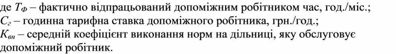 де ТФ – фактично відпрацьований допоміжним робітником час, год./міс.;