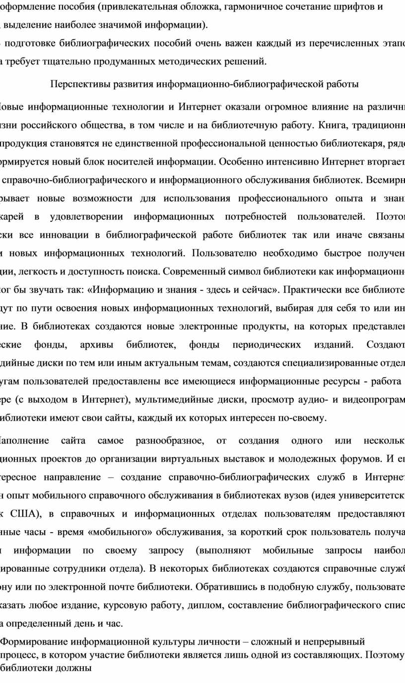 В подготовке библиографических пособий очень важен каждый из перечисленных этапов, эта работа требует тщательно продуманных методических решений.