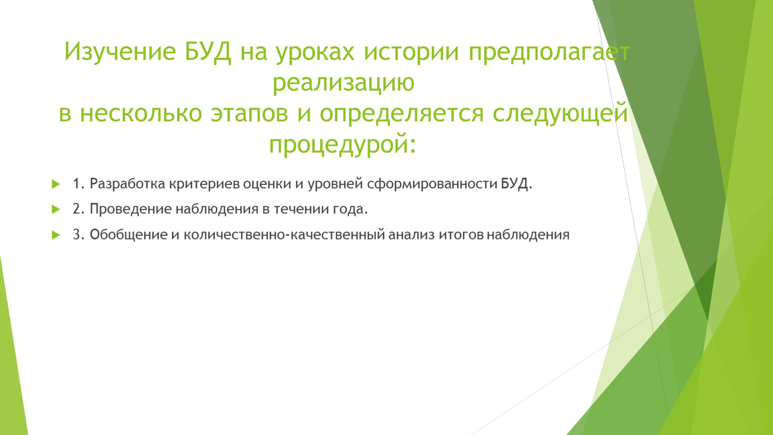 Изучение БУД на уроках истории предполагает реализацию в несколько этапов и определяется следующей процедурой: