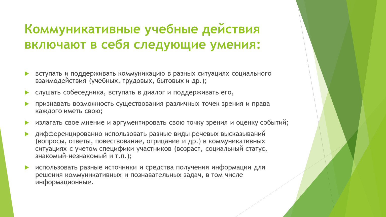 Коммуникативные учебные действия включают в себя следующие умения: