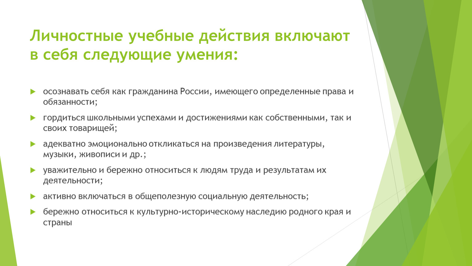 Личностные учебные действия включают в себя следующие умения: