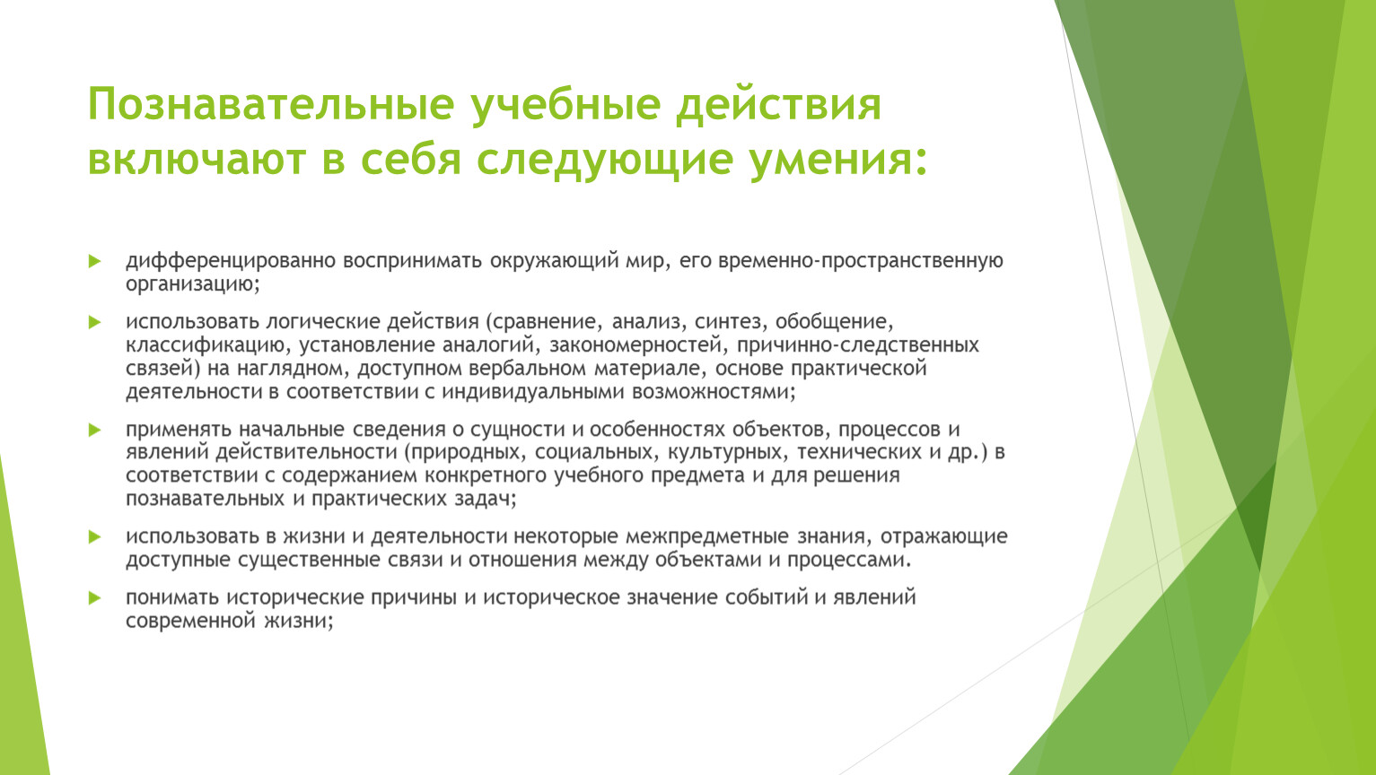 Познавательные учебные действия включают в себя следующие умения: