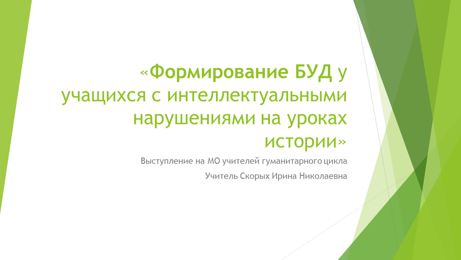 «Формирование БУД у учащихся с интеллектуальными нарушениями на уроках истории»