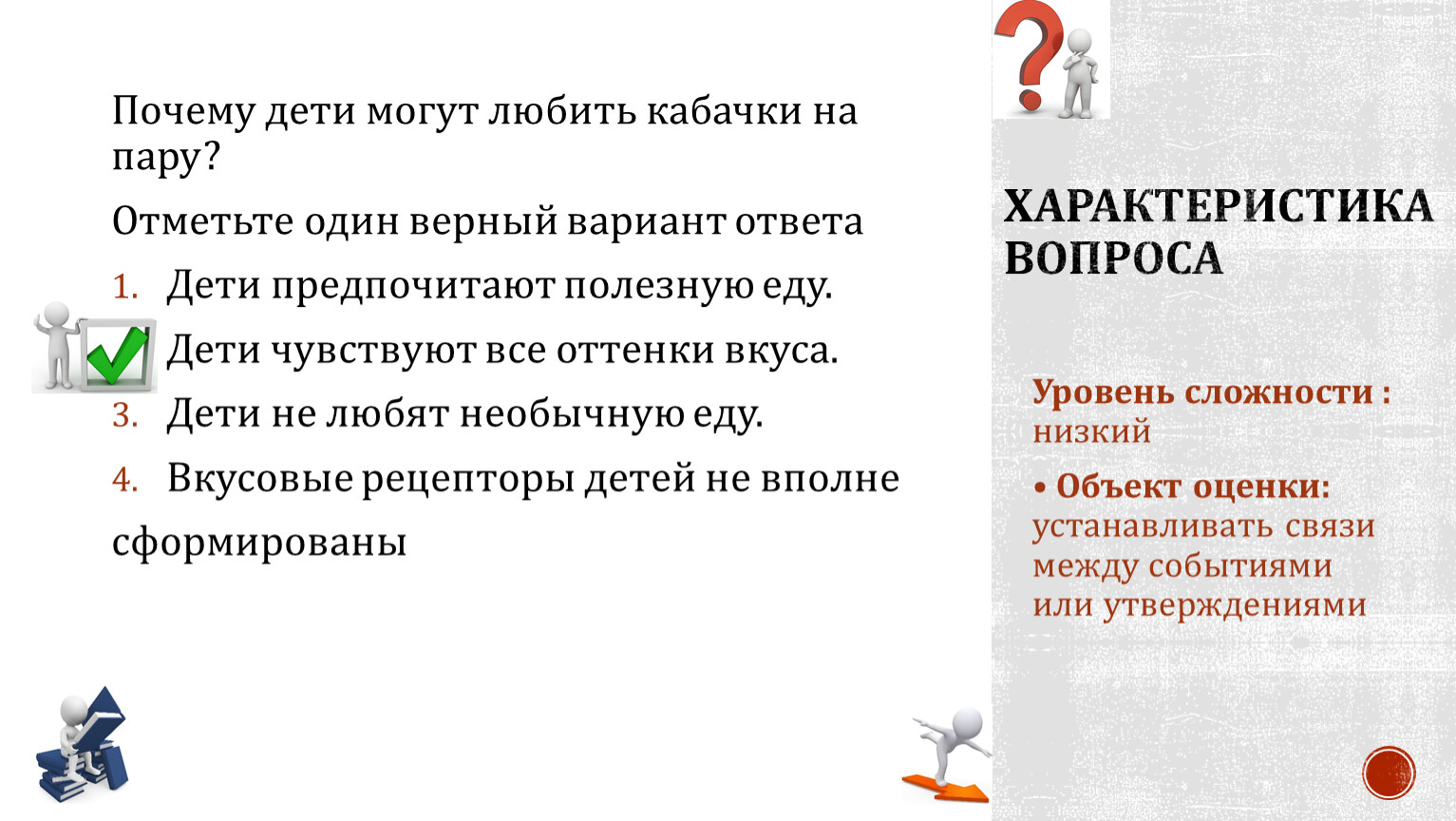 Объект оценки: применять знания для выбора верного ответа