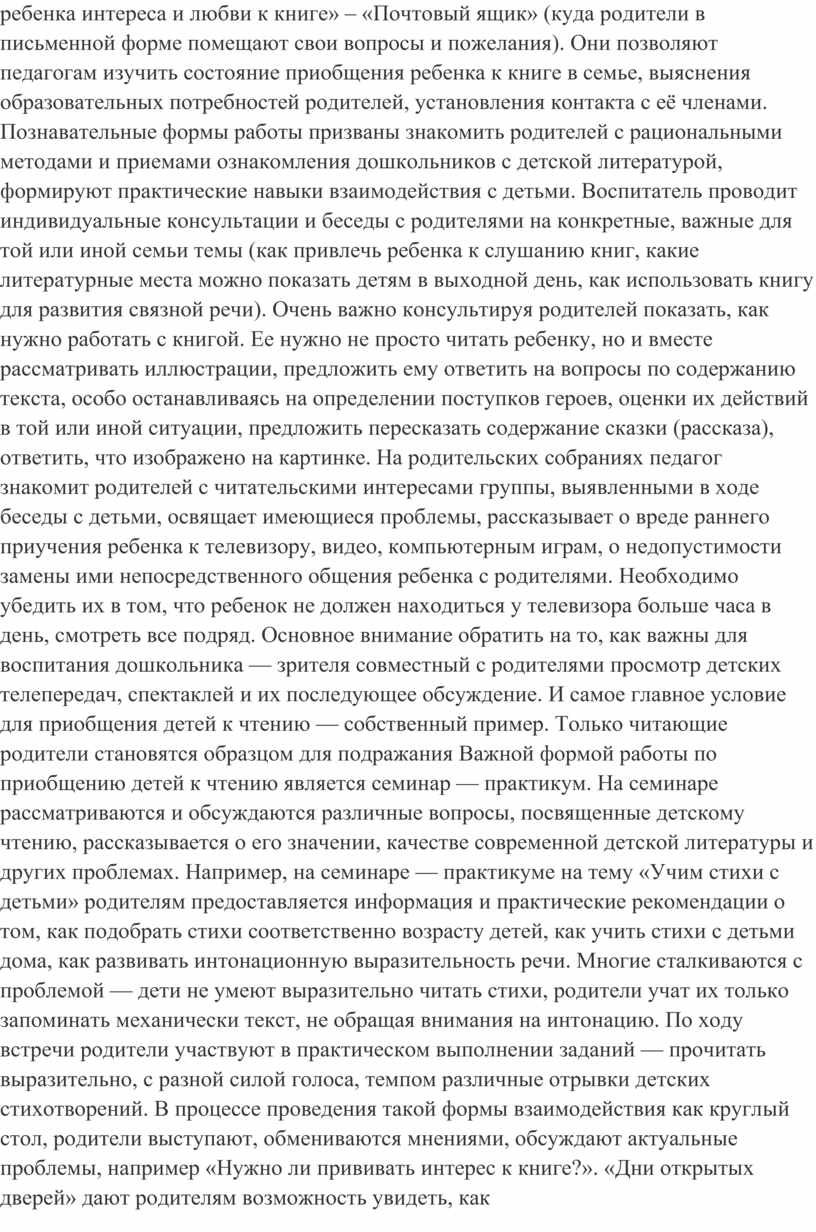 «Формы работы с семьёй по формированию читательской самостоятельности у детей»