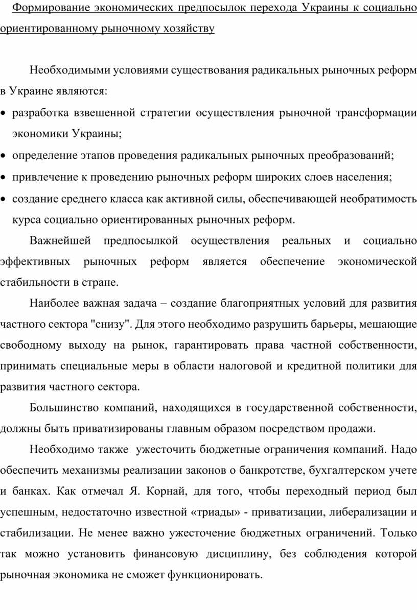 Необходимыми условиями существования радикальных рыночных реформ в Украине являются: