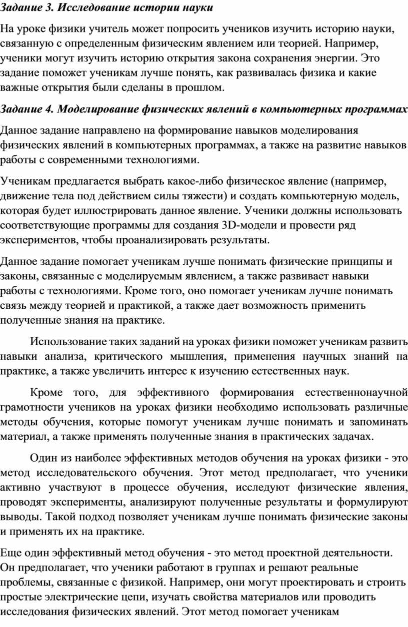 Кроме того, для эффективного формирования естественнонаучной грамотности учеников на уроках физики необходимо использовать различные методы обучения, которые помогут ученикам лучше понимать и запоминать материал, а также применять полученные знания в практических задачах.