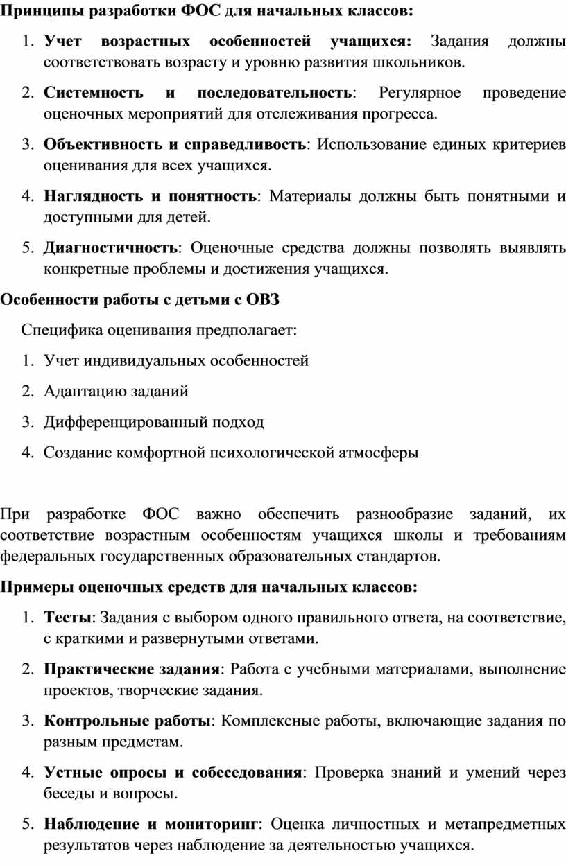 Принципы разработки ФОС для начальных классов: