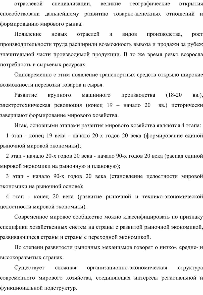 Итак, основными этапами развития мирового хозяйства являются 4 этапа:
