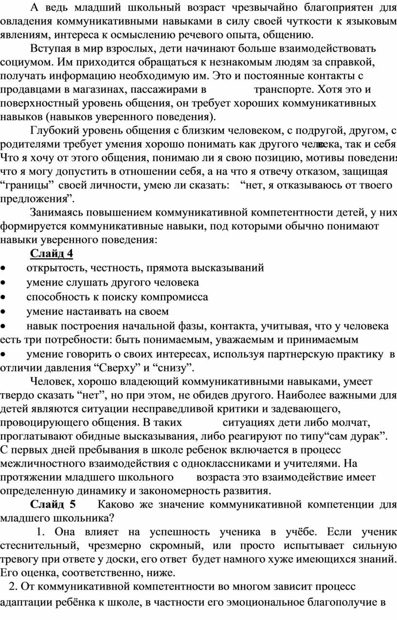 А ведь младший школьный возраст чрезвычайно благоприятен для овладения коммуникативными навыками в силу своей чуткости к языковым явлениям, интереса к осмыслению речевого опыта, общению.