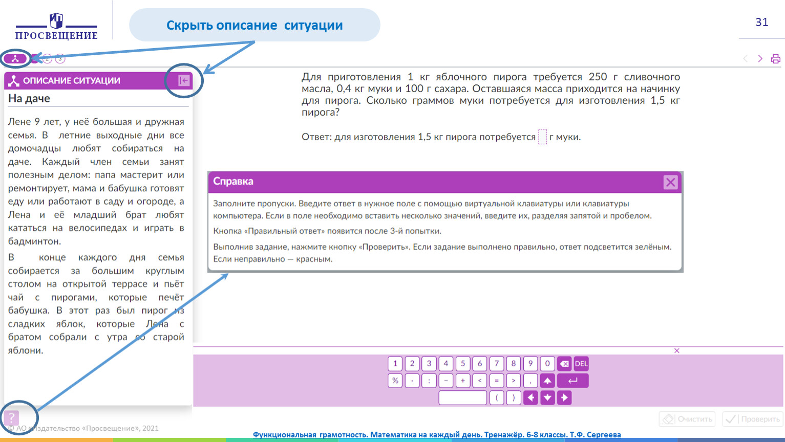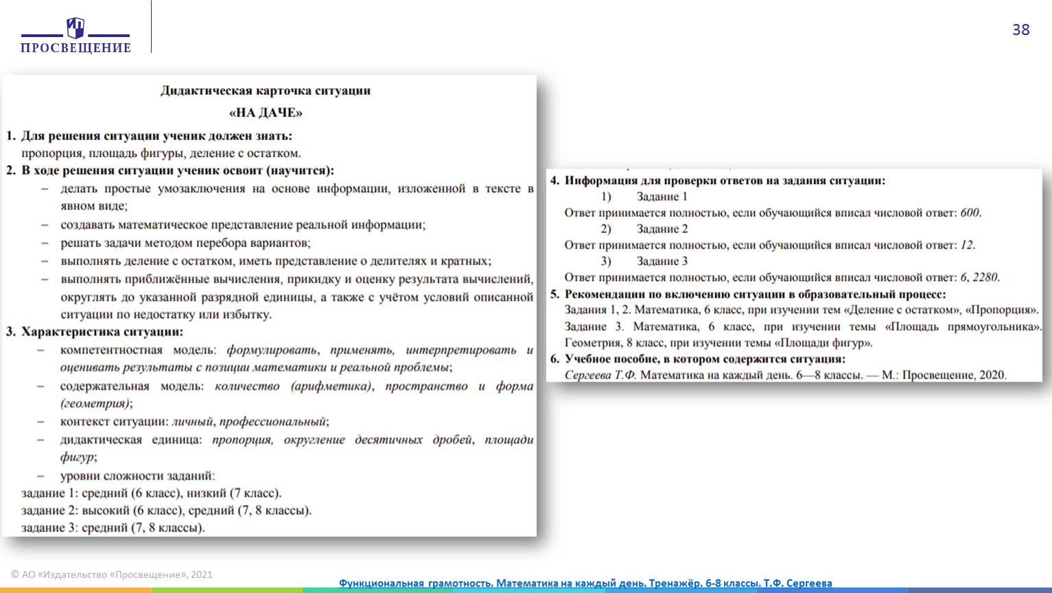 Содержат обучающие и тренировочные задания, охватывающие все содержательные и компетентностные аспекты оценки функциональной грамотности по каждой из областей. Приводятся развёрнутые описания особенностей оценки заданий, рекомендации по использованию системы заданий и их оценки. Все задания построены на основе реальных жизненных ситуаций