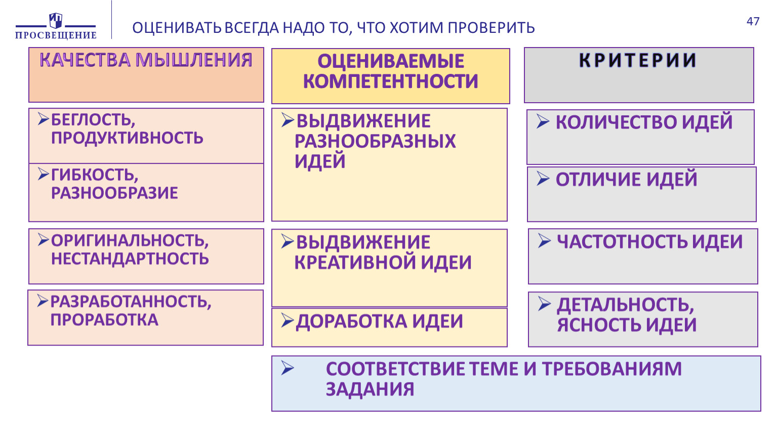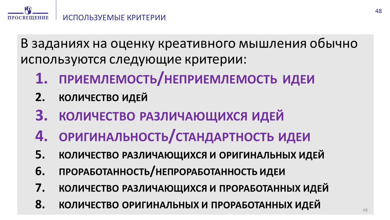 В заданиях на оценку креативного мышления обычно используются следующие критерии: