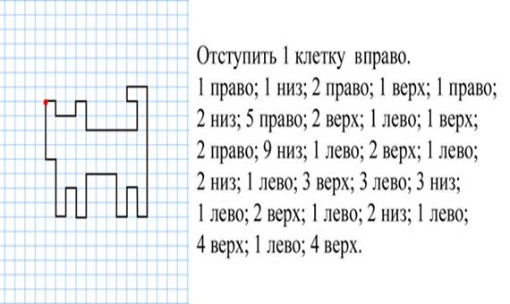 Внеурочная деятельность-это неотъемлемая часть образовательного процесса в школе, в полной мере способствующая реализации требований федеральных образовательных стандартов общего образования. На внеурочной работе несравненно больше, чем на уроке, использую условия для развития индивидуальных задатков, интересов, склонностей учащихся. Я начинаю с простейшего – в первом классе с графических диктантов. На занятиях ребята сначала выполняют под мою диктовку графический рисунок, а затем дополнительно можно его заштриховать, дорисовать элементы фигуры или просто закрашивают.
