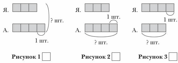На каком рисунке правильно обозначен вопрос к тексту: «В вазе 3 яблока, а апельсинов на 1 больше. Сколько апельсинов в вазе?»